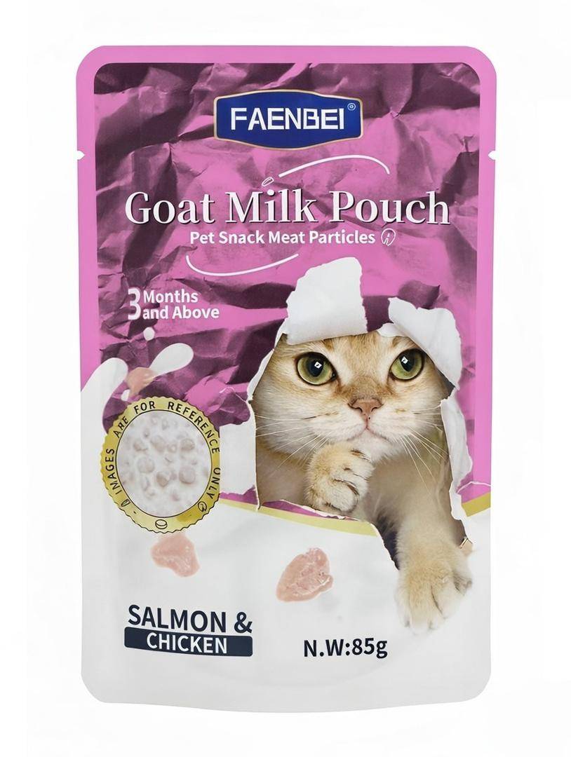 پوچ گربه فنبی مدل چانک طعم سالمون و مرغ داخل شیر بز Faenbei Goat Milk Pouch وزن 85 گرم