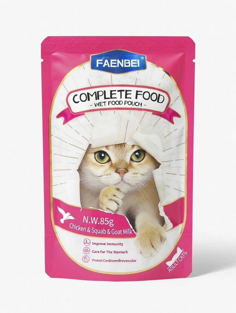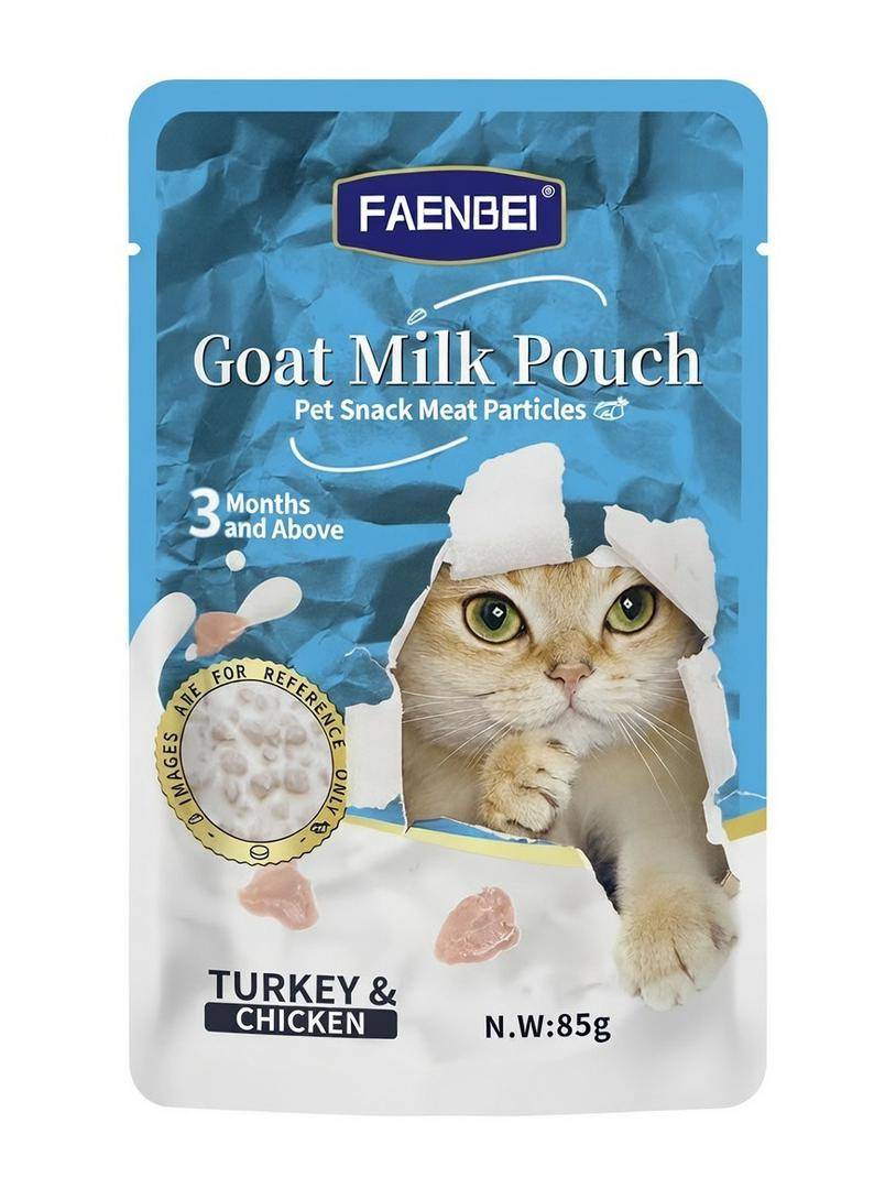 پوچ گربه فنبی مدل چانک طعم مرغ و بوقلمون داخل شیر بز Faenbei goat milk Pouch وزن 85 گرم